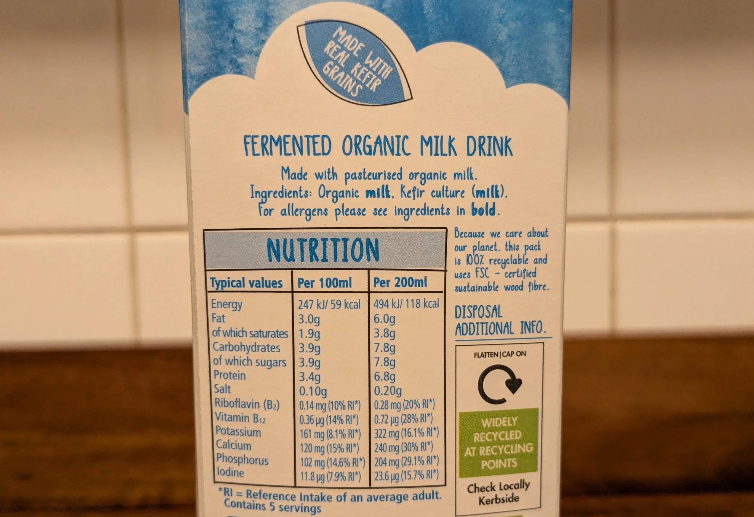 For context, we’ll compare a few key factors against Yeo Valley kefir which is a popular kefir in the UK.