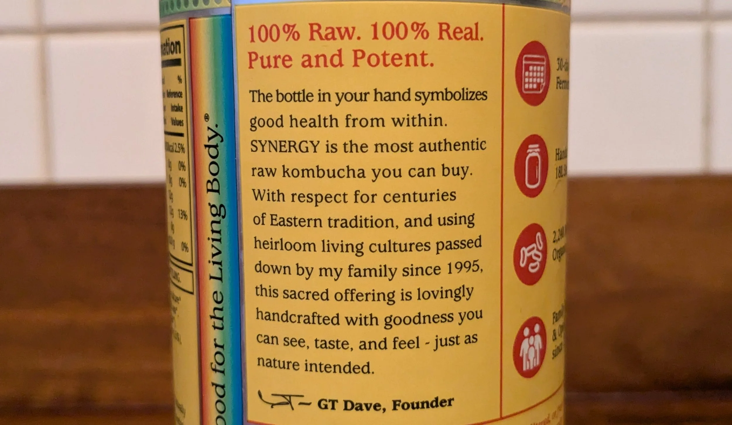 In contrast to many other commercial kombucha, GT's Synergy kombucha is made in a very authentic way.