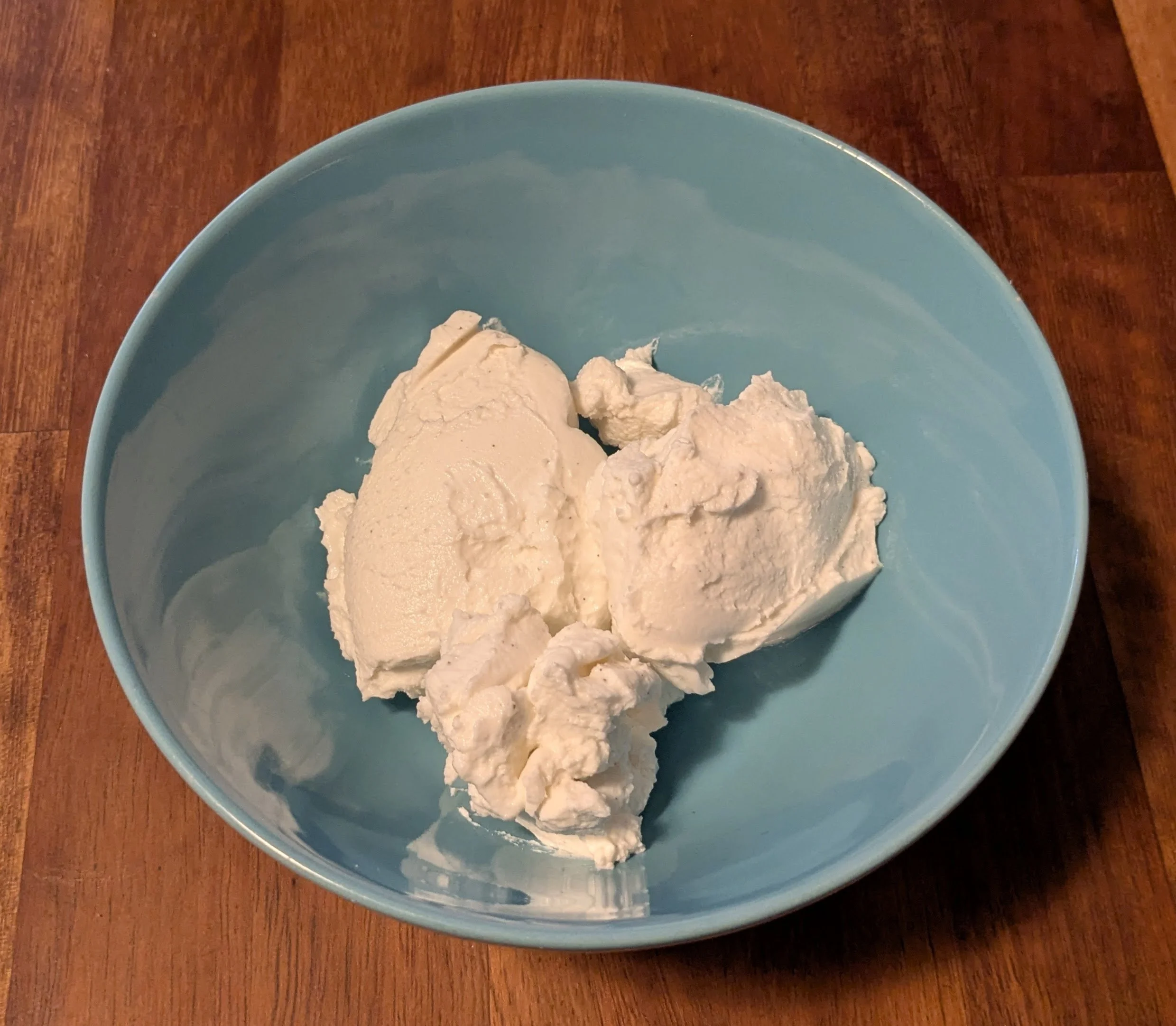 As the picture below shows, it holds an extremely irregular shape in the bowl and appears more like ice cream than a yoghurt.